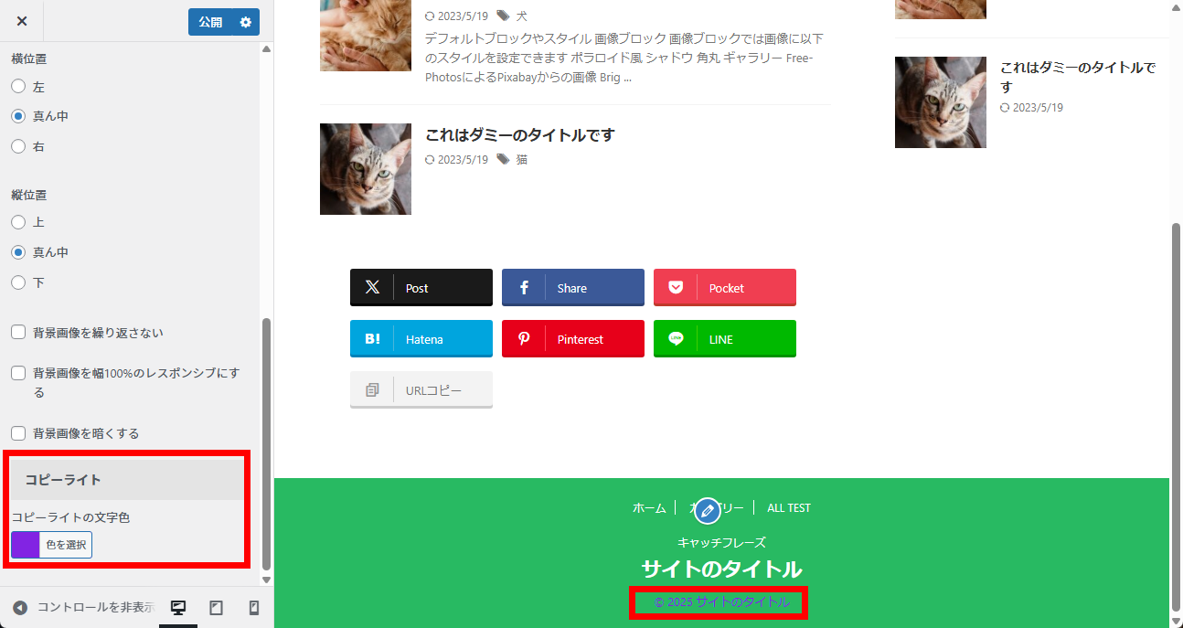 カスタマイザーにコピーライトの文字色設定を追加